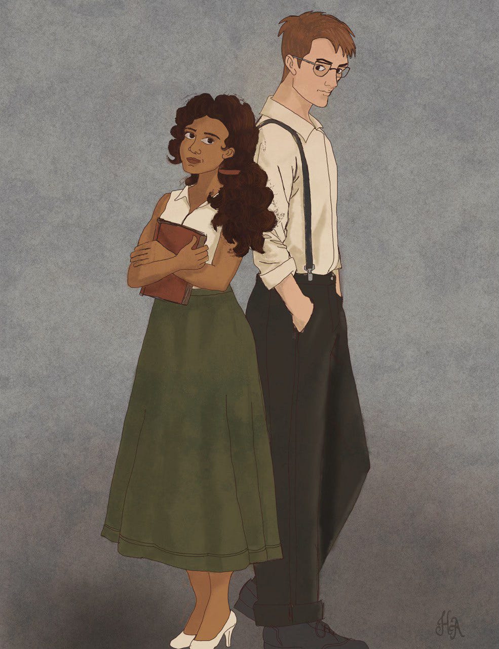 Quando eu e meus amigos autores da Coleção Fantástika estávamos decidindo pelas recompensas de apoios, eu pensei em fazer uma ilustração dos personagens da minha história. Não entrou como recompensa oficial, mas eu botei como meta pessoal. Era algo que não iria consumir verba da campanha e que eu estava mais ou menos segura de que era capaz de fazer.